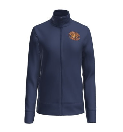 Navy Women's Eddie Bauer Base Fleece with red Morris & Essex logo
